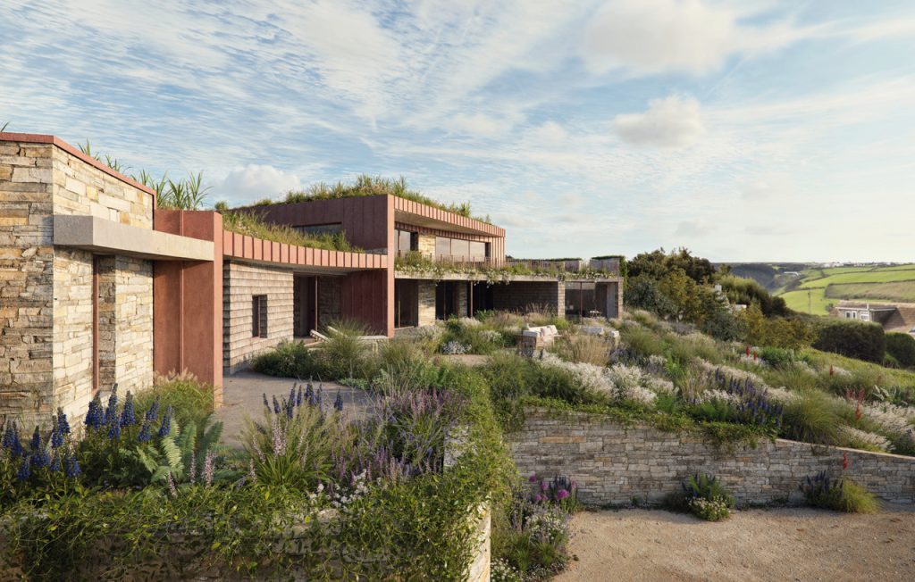 “A breathtaking contemporary coastal home hidden in plain sight in Mawgan Porth, Panoramic views, vast light-filled interiors, minimal glazing, exquisite design and build quality, and exceptional amenities, including wellness zones, sunken lounge, annexe and sweeping planted rooftop terraces. All within touching distance of the beach”